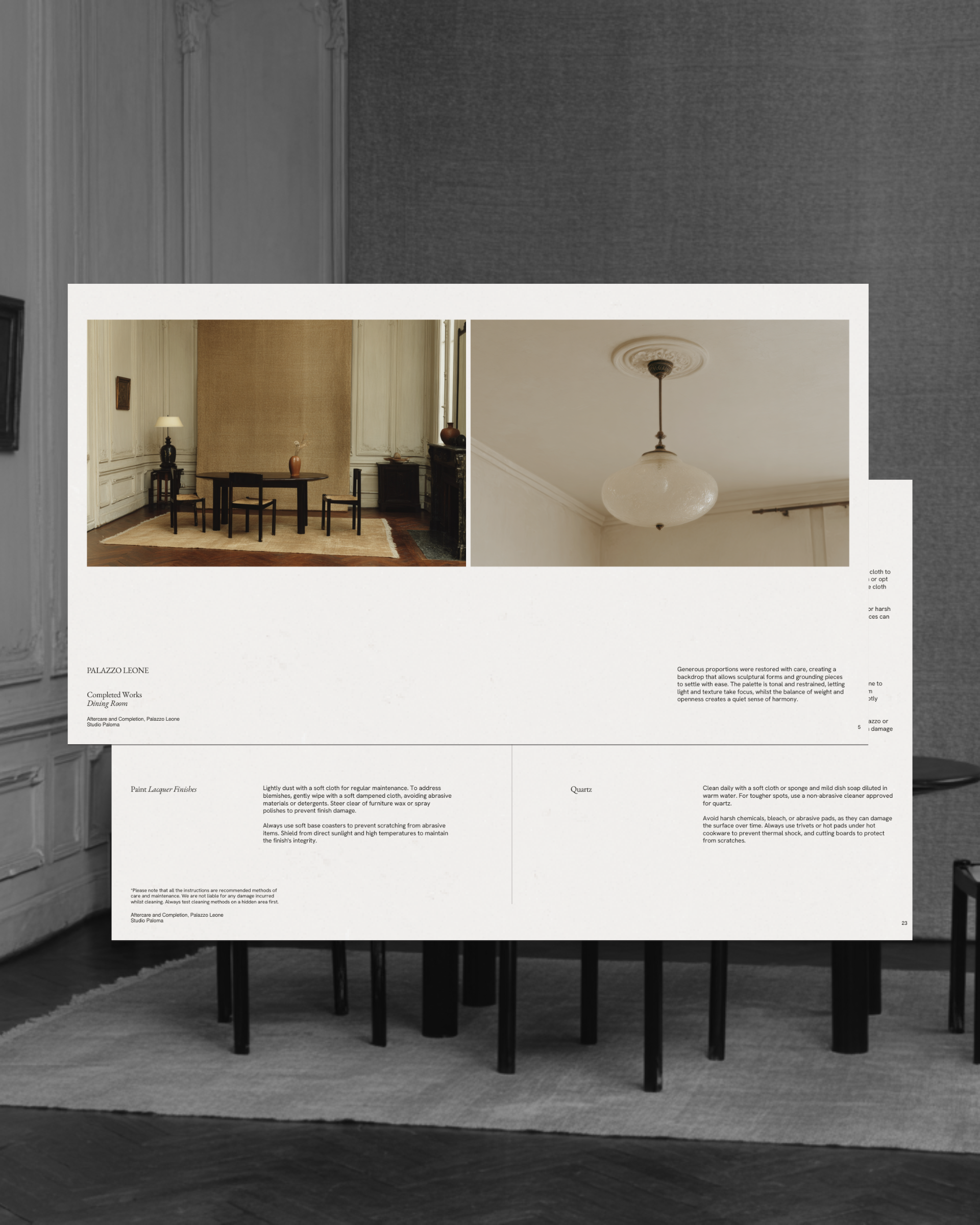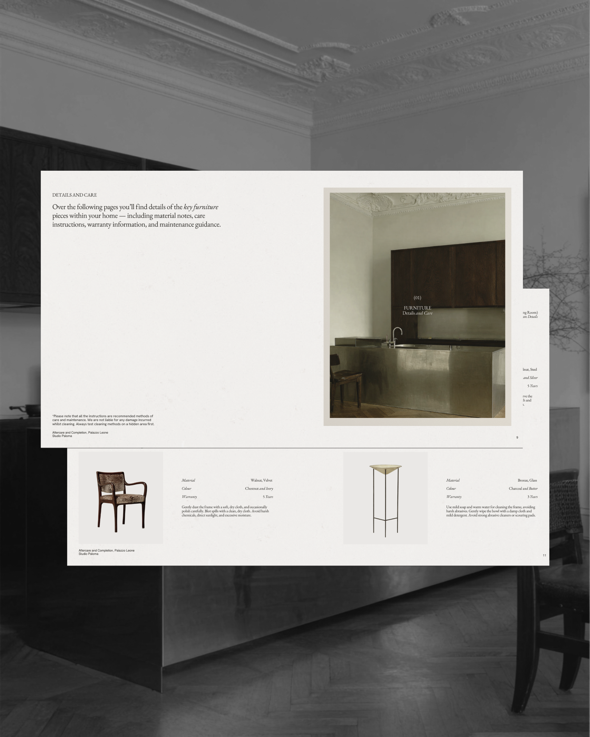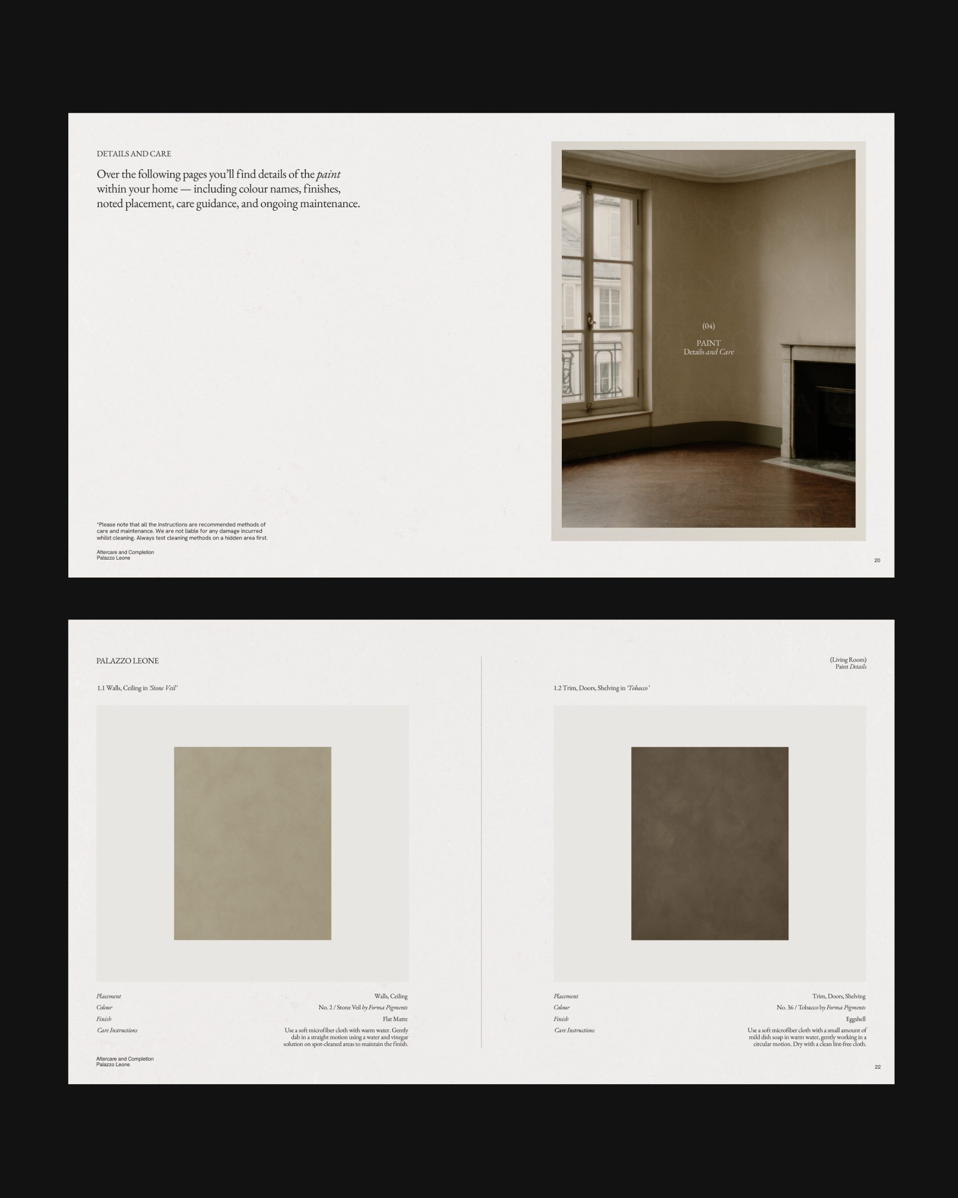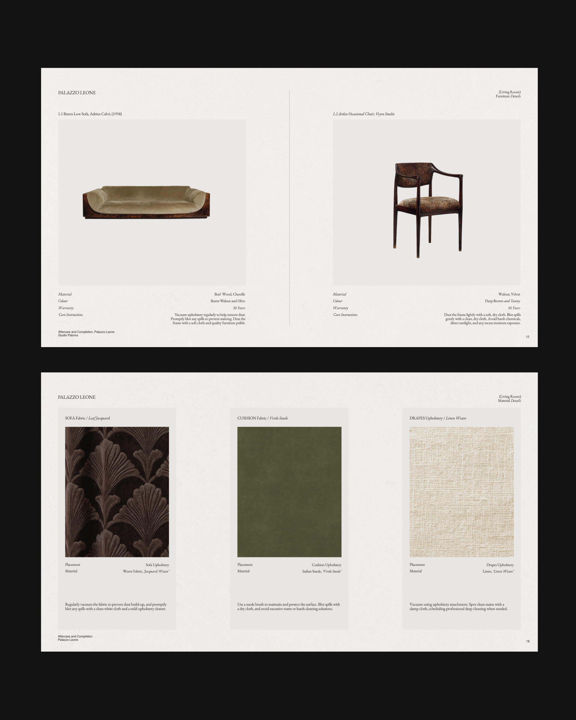 Des détails aux informations d'entretien, en passant par les garanties et les contacts clés, chaque page vous permet de démontrer votre professionnalisme et votre souci du détail à la fin d'un projet client.