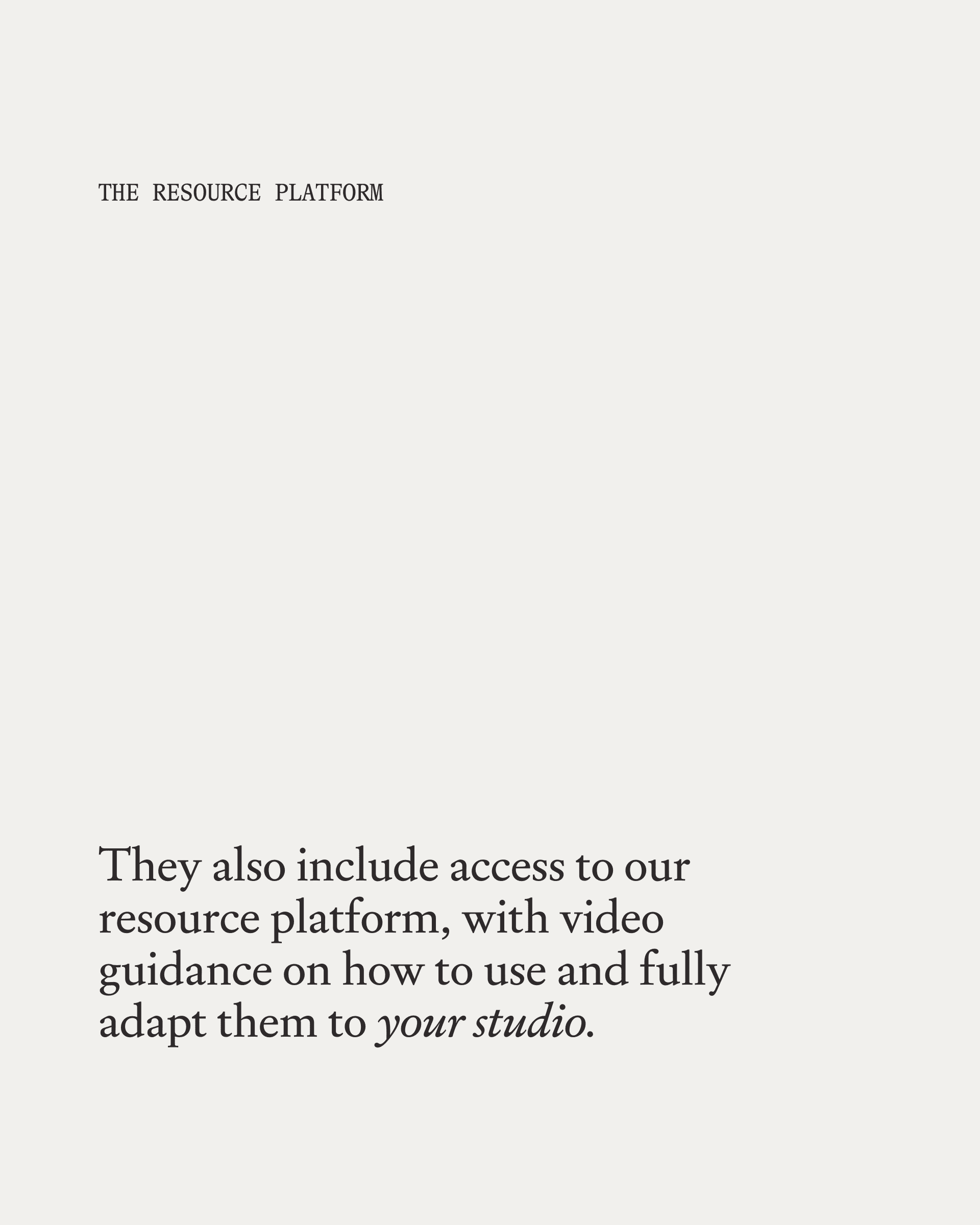 Deux séries d'ateliers vidéo sont incluses : l'une partageant nos recommandations sur la façon d'utiliser les questionnaires au sein de votre studio, et l'autre montrant comment les personnaliser entièrement.